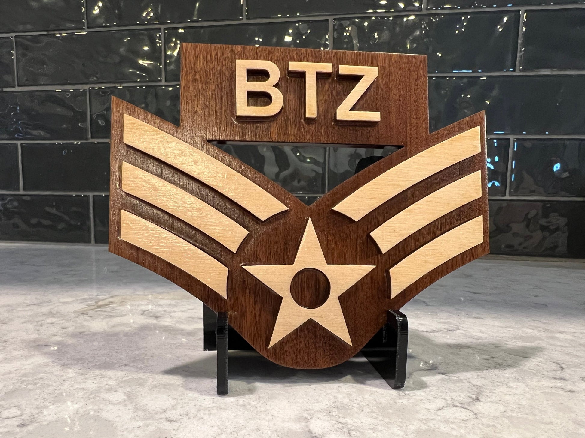 Air Force Promotion Gift - Wooden Stripes with stand-select from SRA-CMSgt