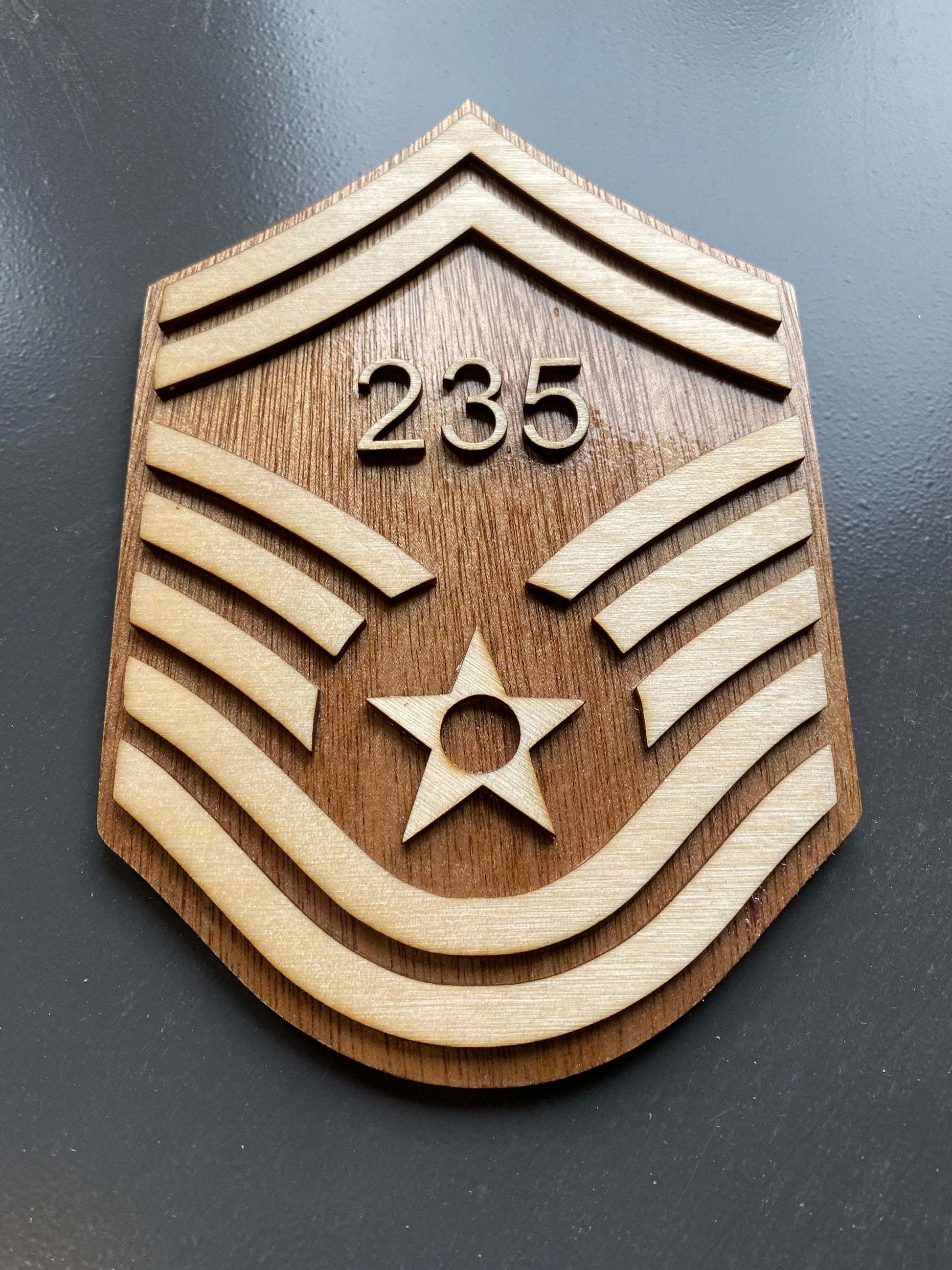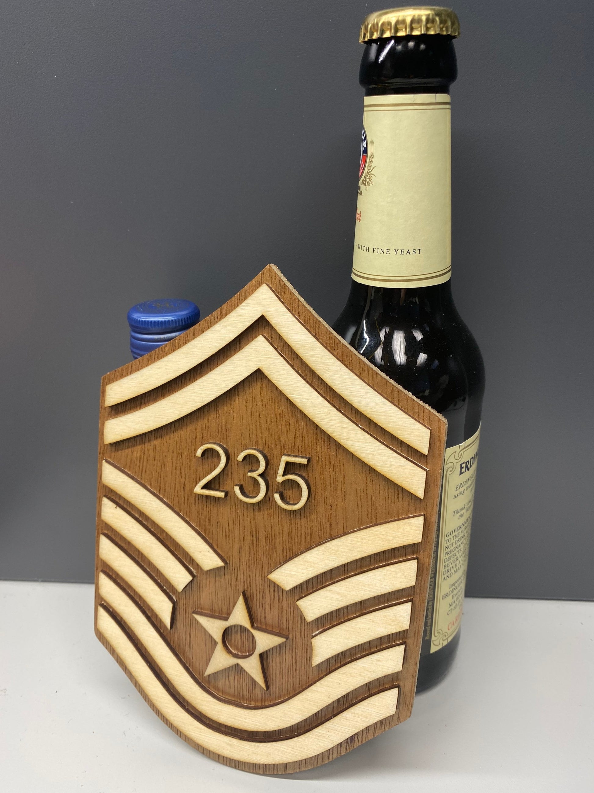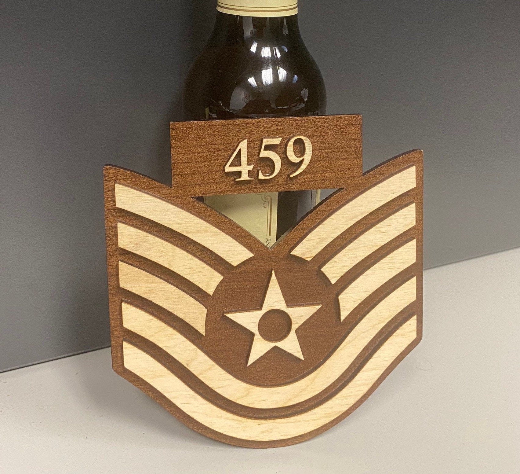 This listing is for one wooden Air Force stripe, laser cut with raised stripes and numbers. Made from 1/8 birch plywood and stained with natural and honey stain to create a beautiful contrasting wood design. The back of the wood is grade BB and may contain knots or other natural imperfections. A great keepsake that can be gifted with the selects favorite drink, framed, or presented by itself. Great for displaying on their desk. Orders can be expedited to meet selection announcements. Great for gifts from squadron booster clubs or supervisors.
