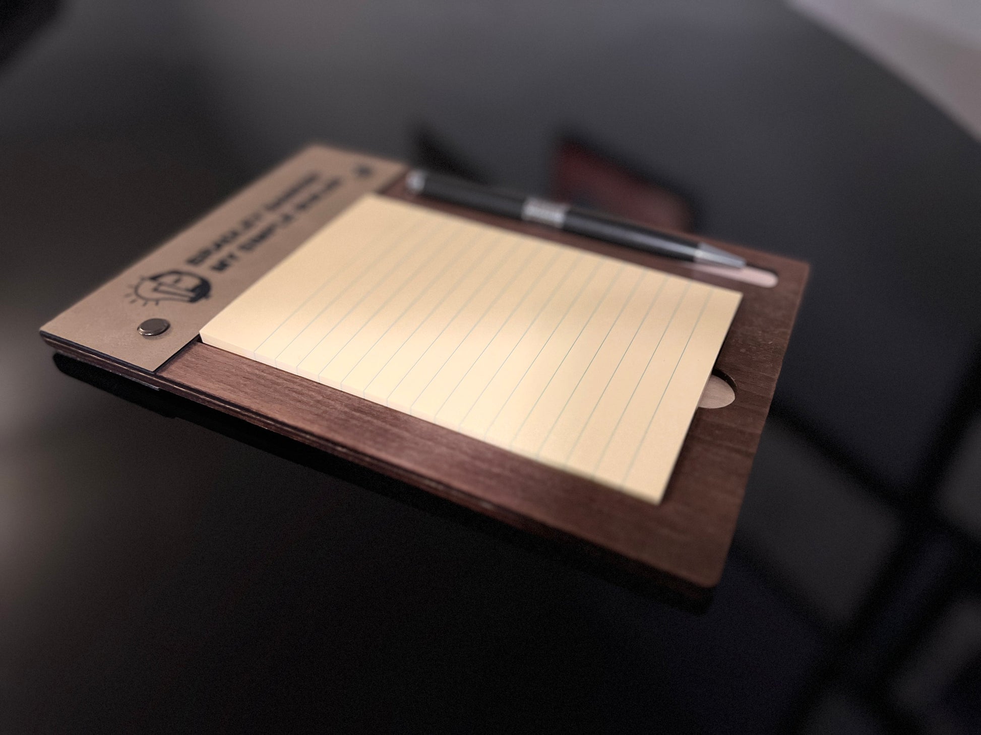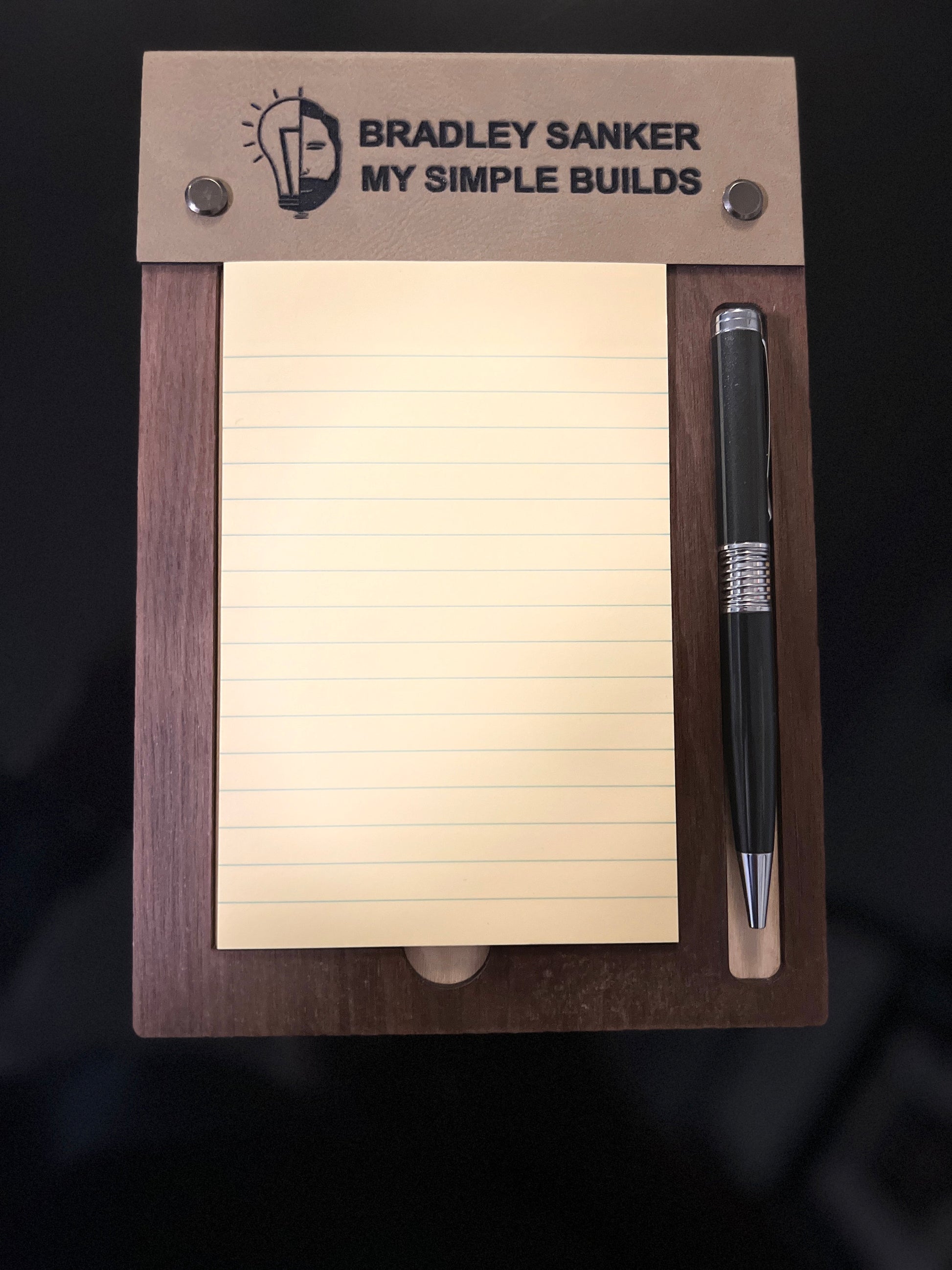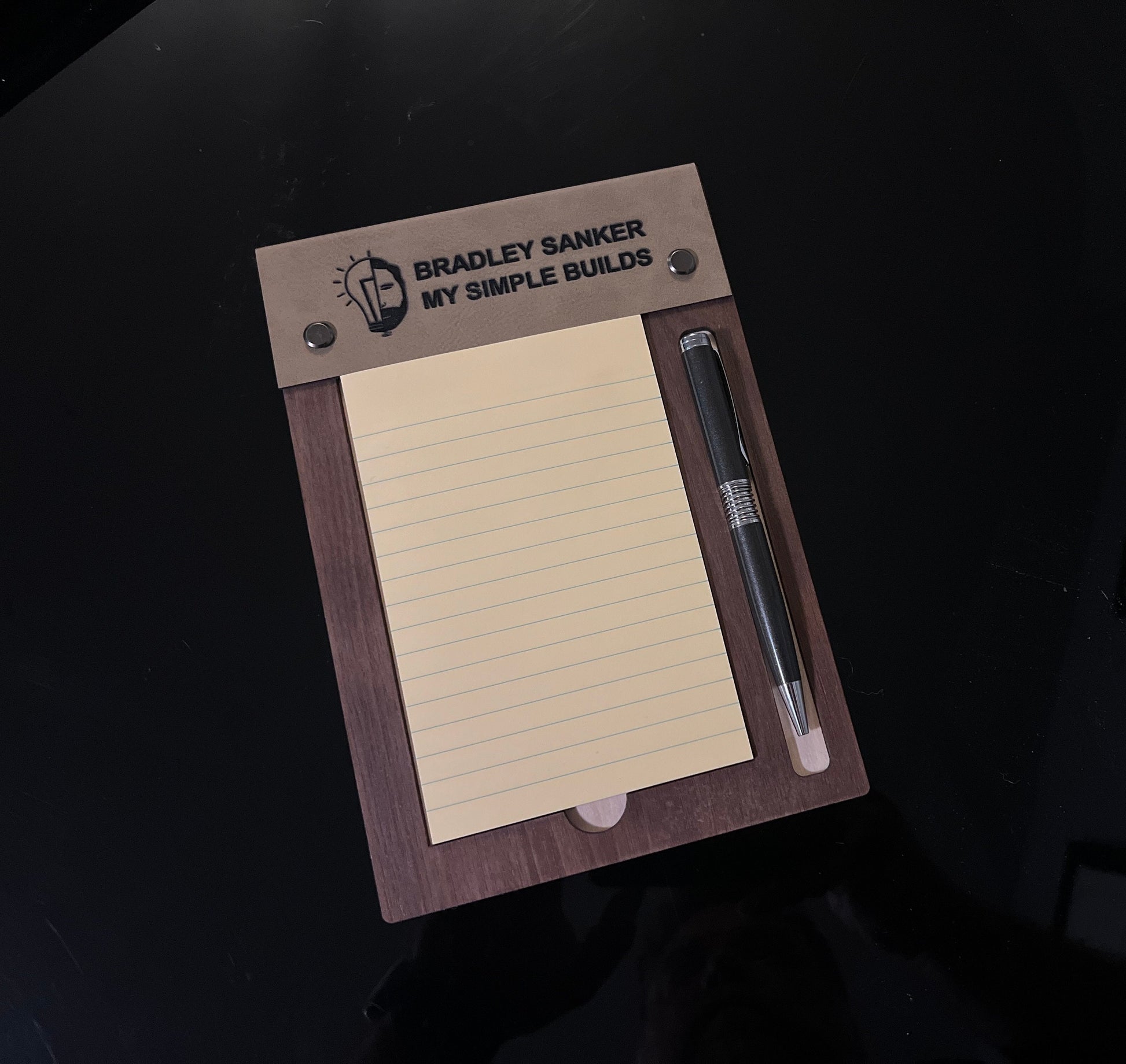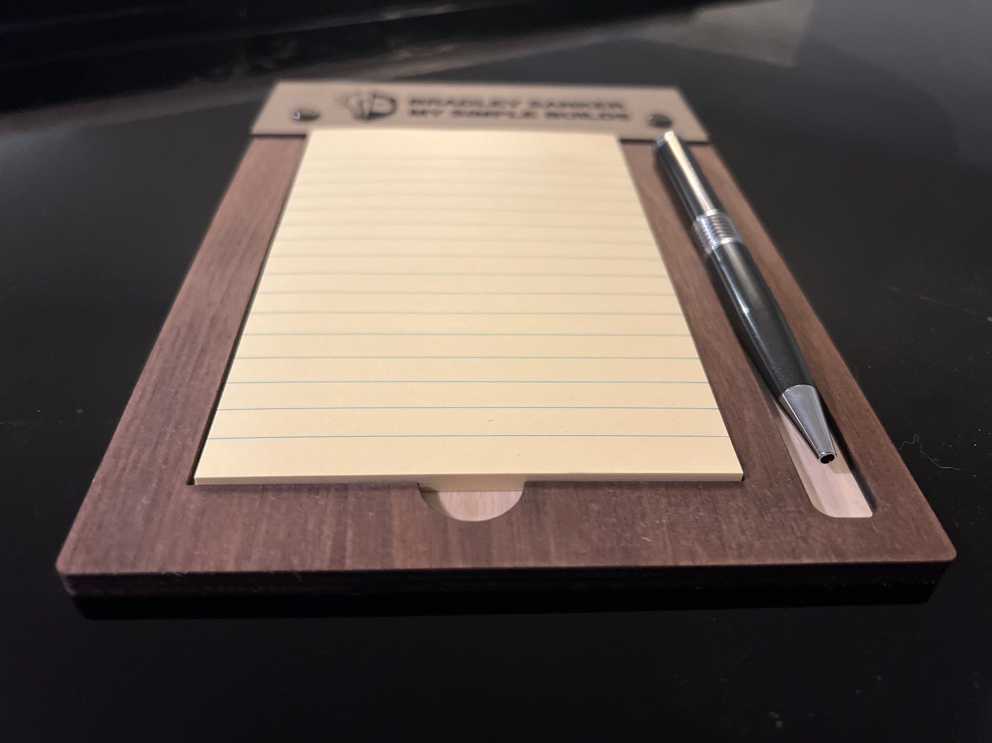 Free Shipping - Desktop sticky notepad holder with pen slot. holds 4x6 pad. Bespoke gift for military, teacher, executive and more.