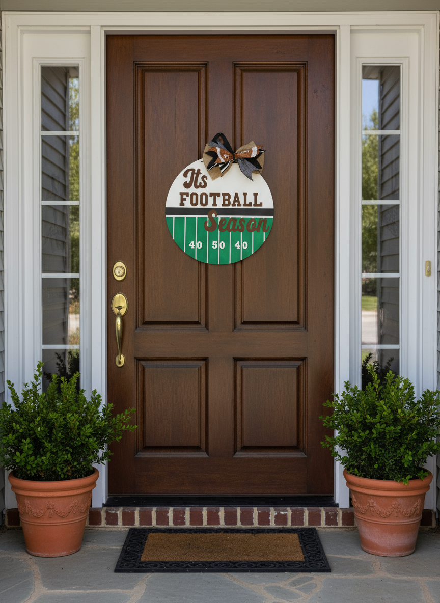 Celebrate game day with this 16" round door hanger, expertly laser cut and hand painted to bring a playful spirit to your home. Perfect for football fans, this "Its Football Season" sign adds a fun, festive touch to your front door, welcoming friends and family to join in the excitement. Durable and eye-catching, it’s the ideal way to show your team pride all season long.